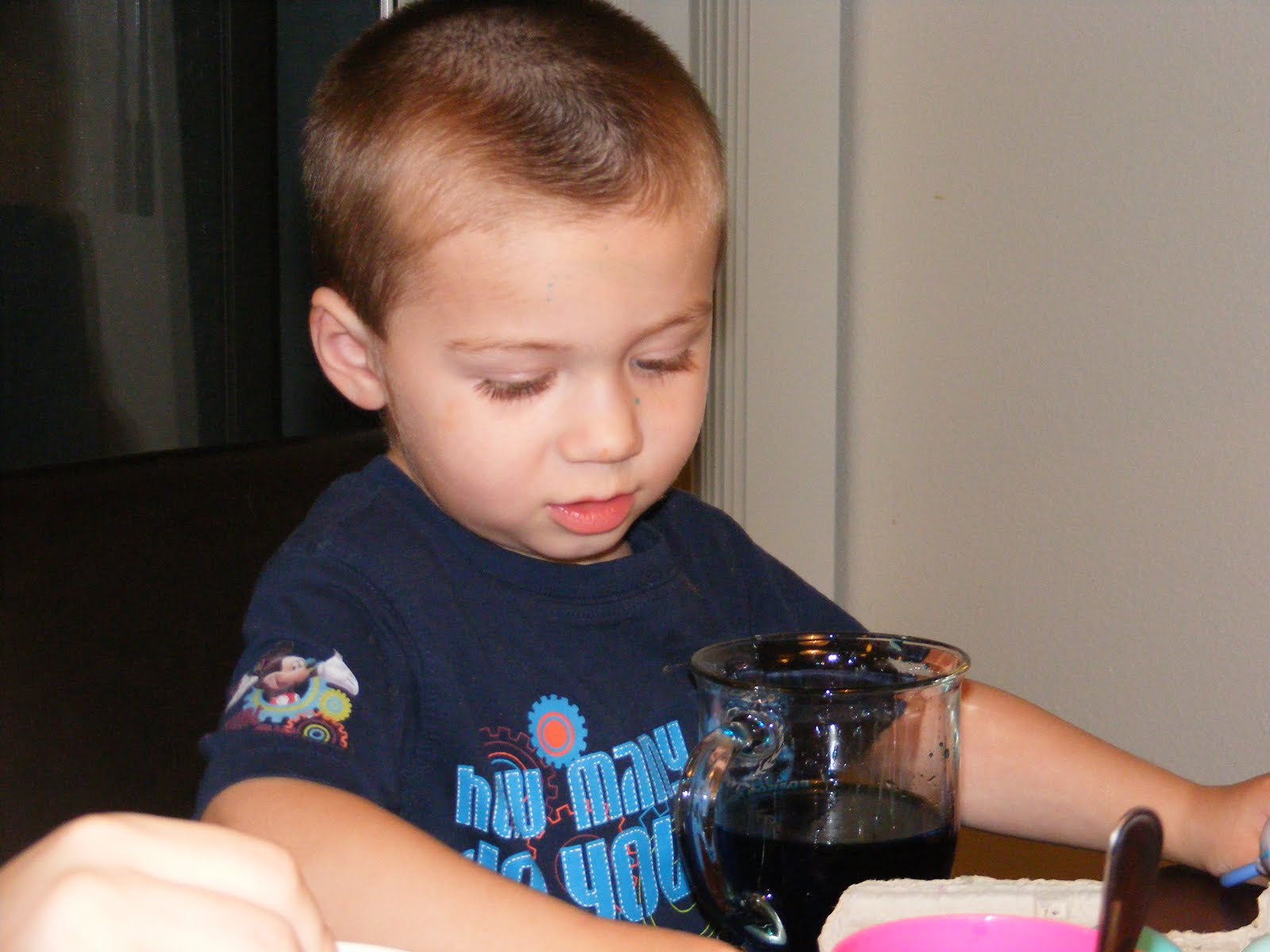Donovan was very upset that he had to share the blue egg dye, he went to be after this